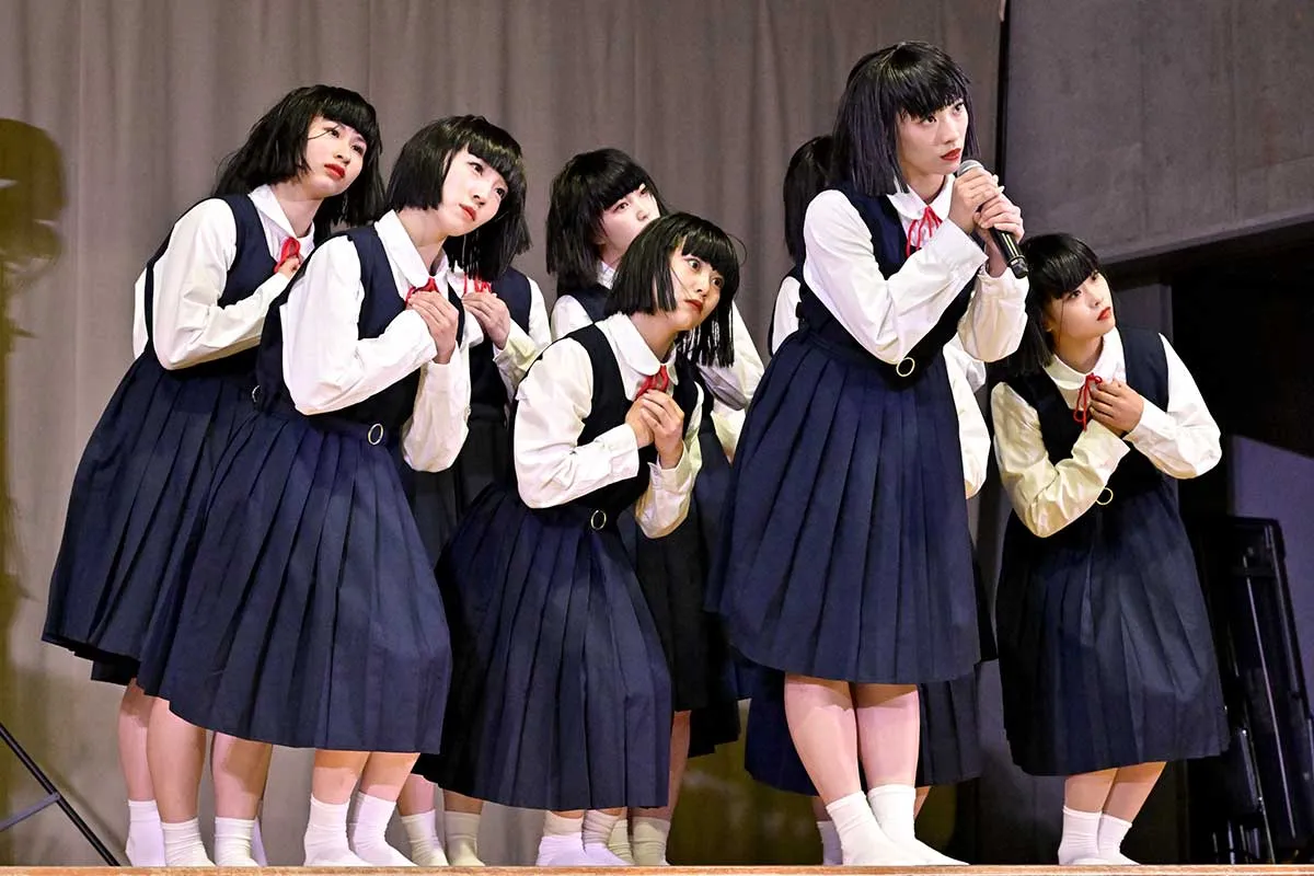 国内外から注目を集めていて「謎の制服おかっぱ集団」というキャッチコピーが使われており、制服風の衣装+おかっぱという斬新なビジュアルと中毒性のあるダンスが特徴です。