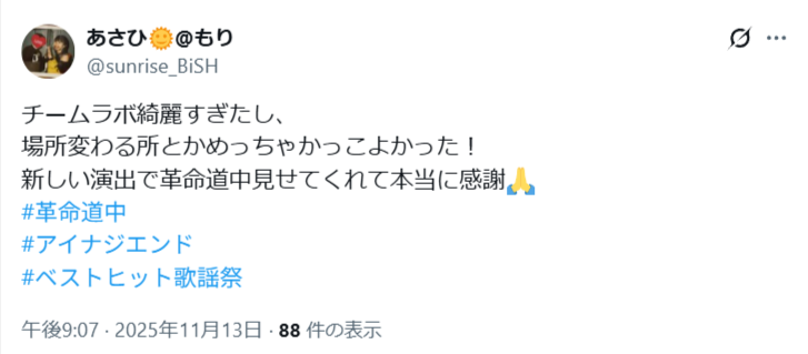 アイナ・ジ・エンドが歌ったステージを観たSNSでの声