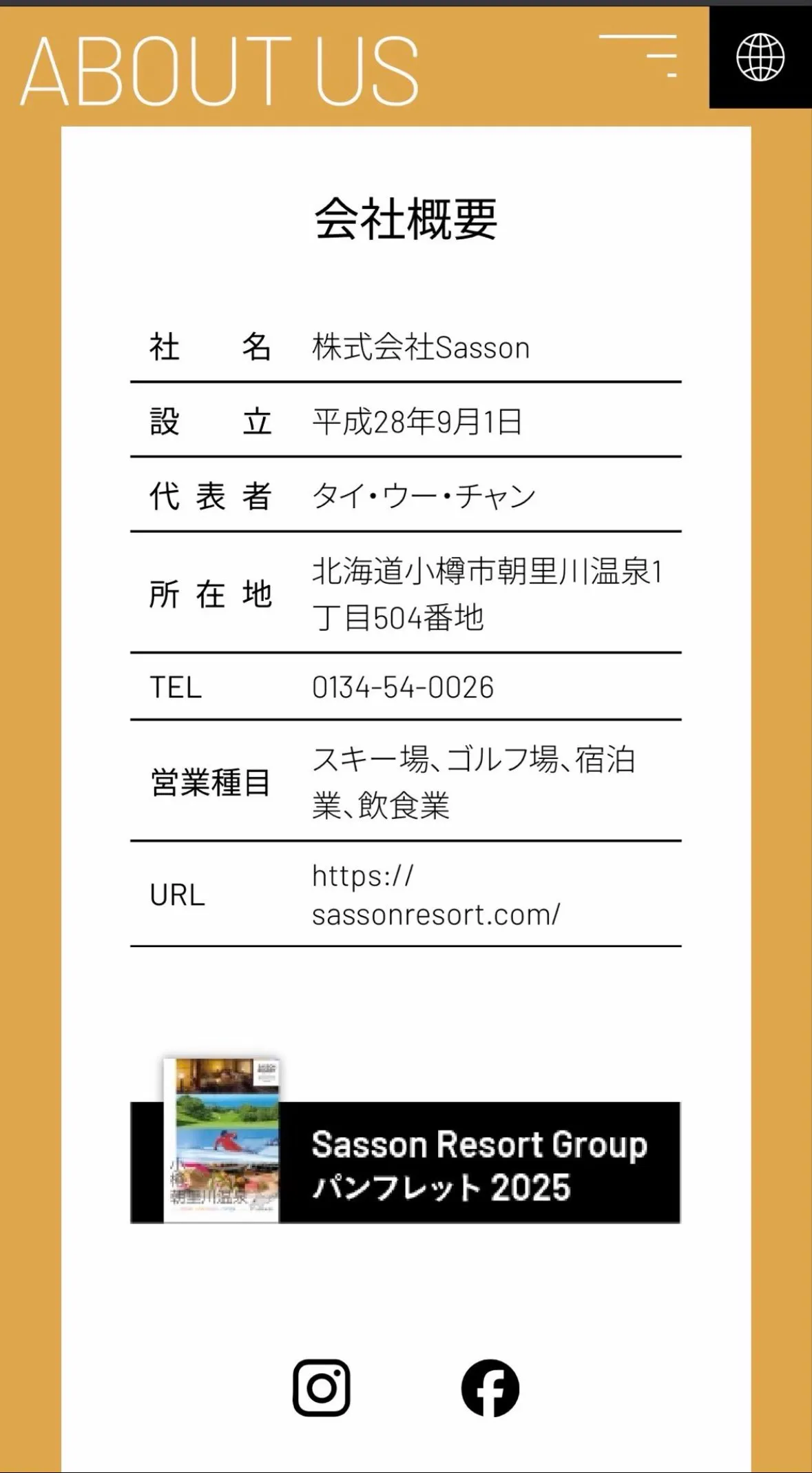 この朝里川温泉スキー場の運営会社は株式会社Sasson(サッソン)です。