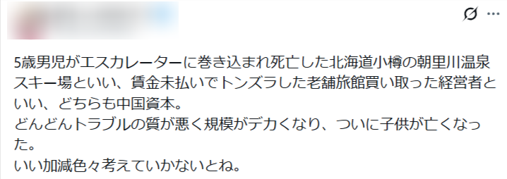ネットでは、この朝里川温泉スキー場の運営会社が中国人オーナーではないのかと話題になっています。
