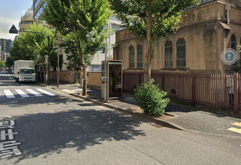 2つ目は、カトリック神田教会前の電話ボックスです。
