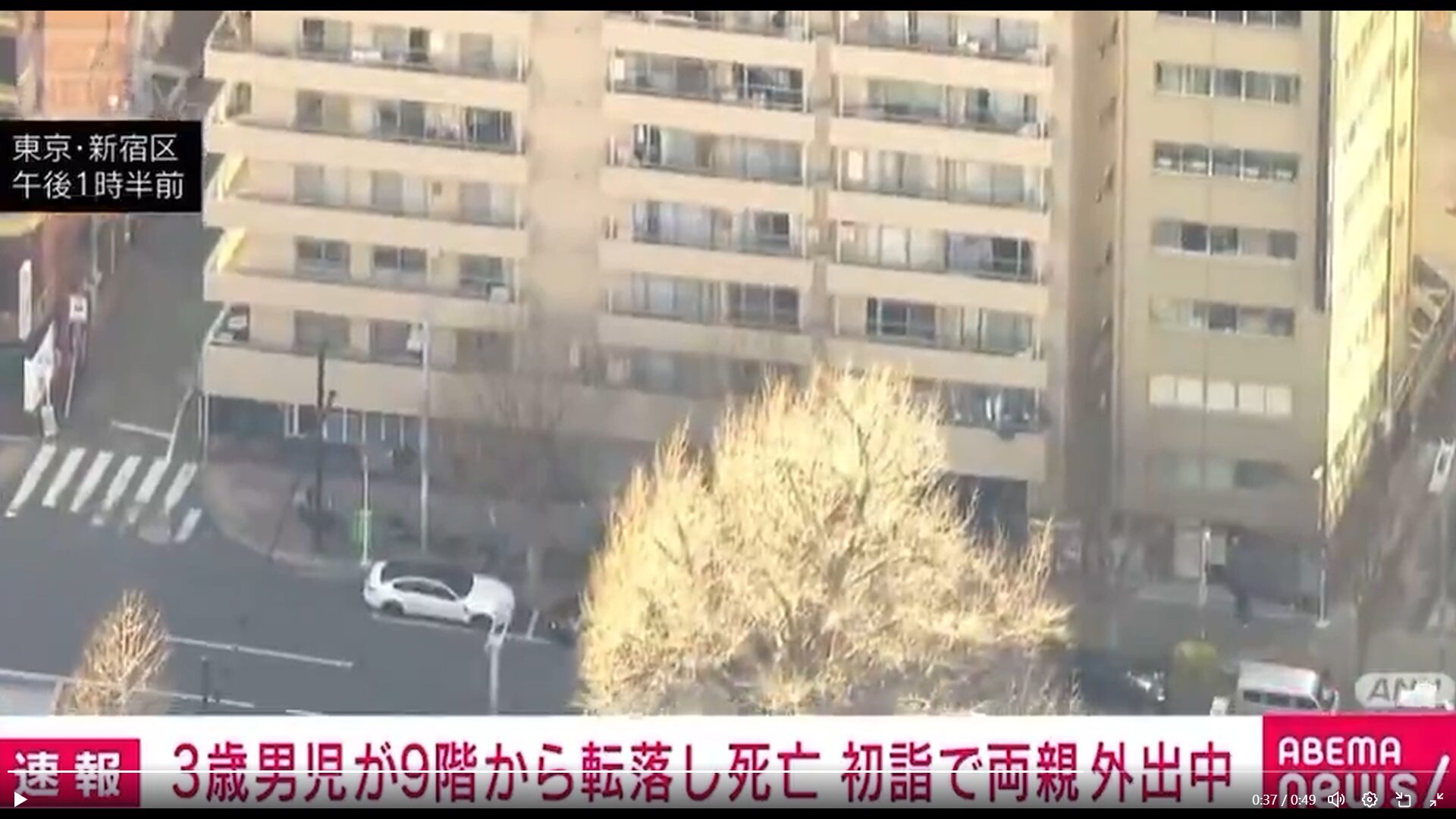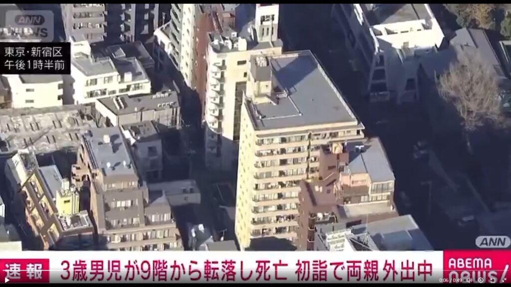 新宿のマンションで3歳の男の子がベランダから転落してしまった事故。