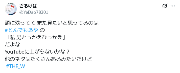 『THE W 2025』でとんでもあやさんはAブロックで登場しました。