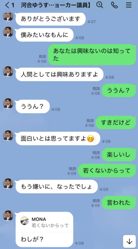 河合さんは冗談や穏やかな態度で受け流そうとしているものの、溝が深まっている様子が伝わります。