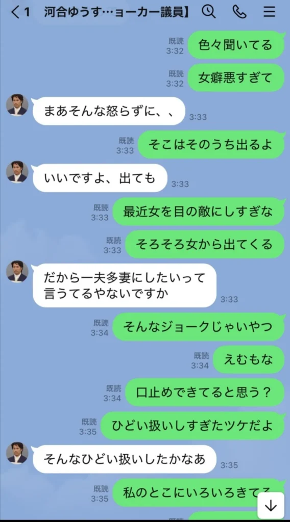 その後、河合さんが街頭演説でフィフィさんを「反日」と揶揄した後、フィフィさんが過去の交際を暴露し、ツーショット写真とLINEスクショを公開。