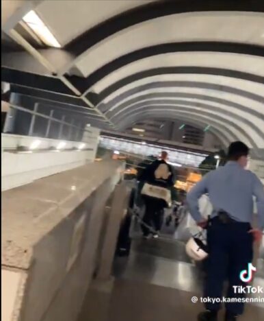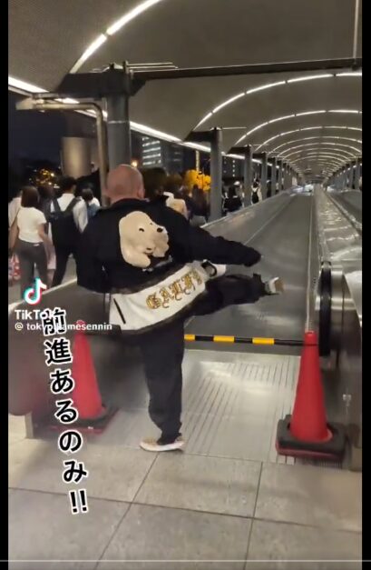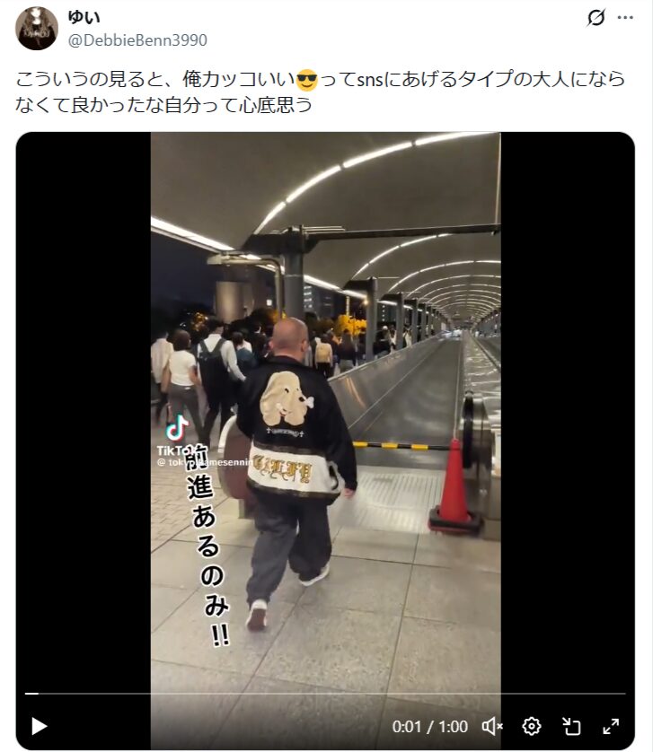 動画内で、男性が進入禁止のエスカレーターを無視して歩いていました。