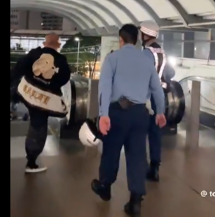 また別の場所でも、警備員の声かけを無視して進入禁止のエスカレーターを進んでいました。