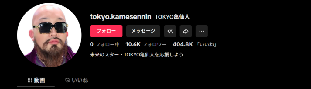 動画内にTikTokのアカウントが表示されていたので検索したところ、「TOKYO亀仙人」という人物だということが判明しました。