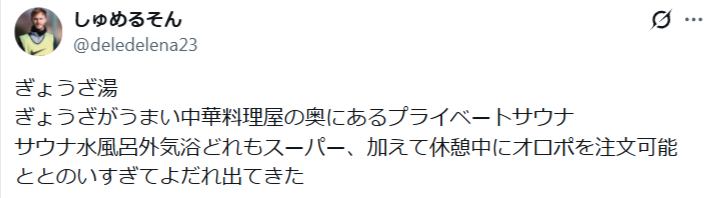 餃子×サウナという異色のお店「ぎょうざ湯」。