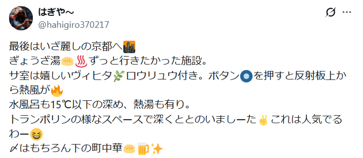 今回は、京都にある「ぎょうざ湯」のシステム・予約方法・料金を解説します。