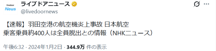 羽田空港地上衝突事故のネット反応