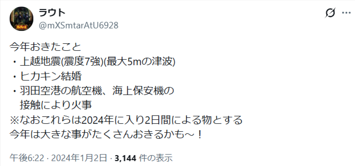 — 修斗 (@tshinfuku1115) January 2, 2024