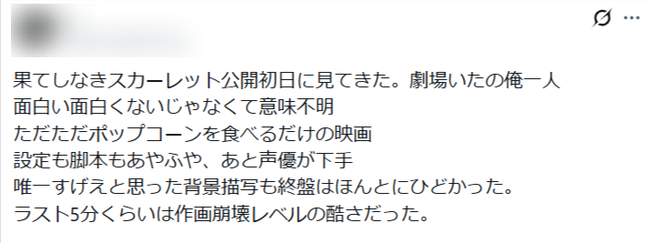 『果てしなきスカーレット』は公開と同時に低い評価が見られた