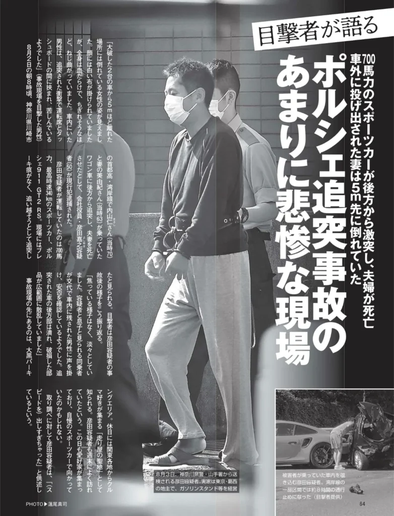 彦田被告は、2020年8月に首都高速湾岸線で起きたポルシェ車と乗用車の衝突事故で、乗用車の夫婦が死亡した事件の中心人物として報じられました。