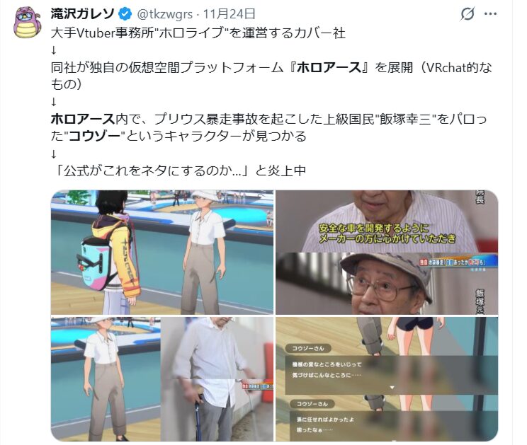 2025年11月にNPC「コウゾー」が、実在事件を想起させるとの指摘があり炎上しました。