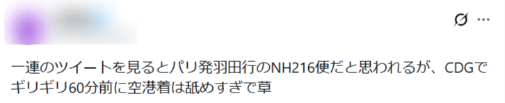 2026年2月11日、神谷さんがフランスからの帰国便について以下の投稿をしました。