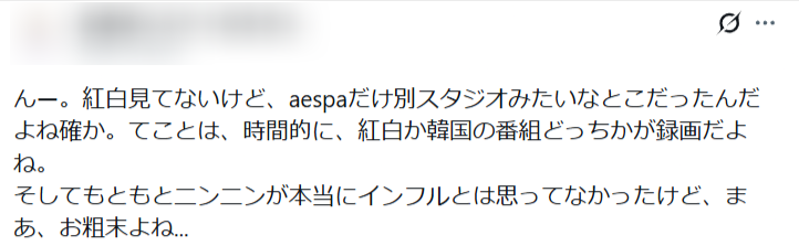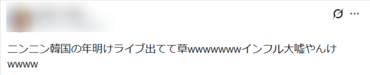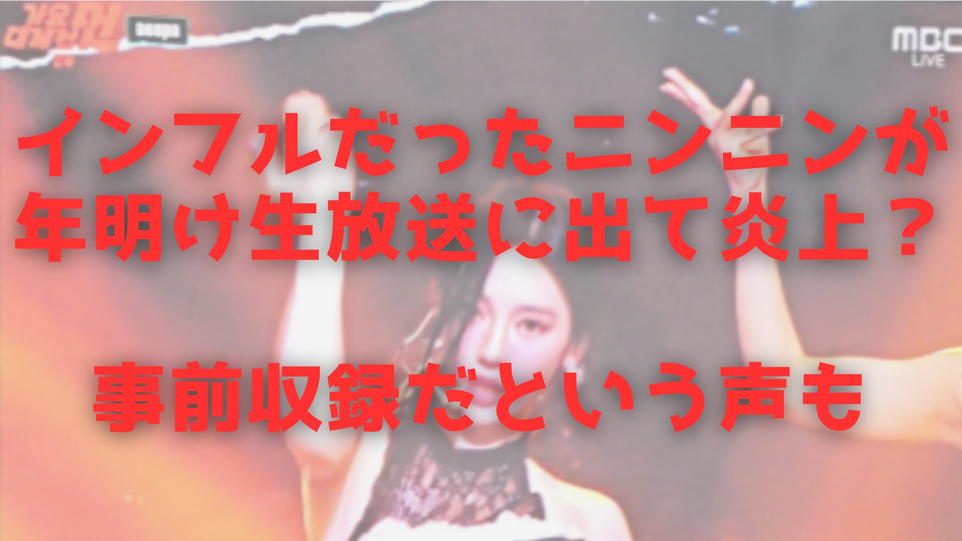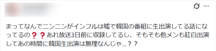 インフルエンザで紅白を辞退したニンニンさんが、韓国の年明け生ライブに出演しているという内容でした。