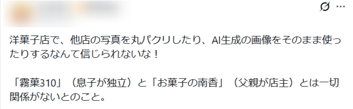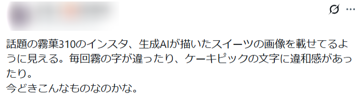 また霧菓310は、口コミの削除・AI画像使用疑惑も上がっています。