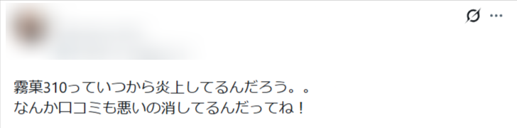 霧菓310から正式なコメントは今のところありませんが、何かしらの動きがあるのか注目です。