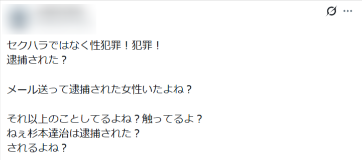 杉本達治が行ったセクハラ内容とは?
