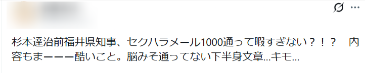 今回は、杉本達治氏が送ったセクハラメッセージの内容をまとめました。