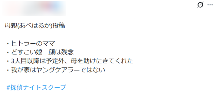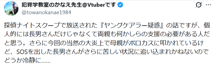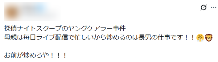2026年1月23日放送の探偵ナイトスクープで「6人きょうだいの長男が1日だけ次男になりたい」という依頼。 放送後、この家庭の父親の育児への関わり方について、ネット上…