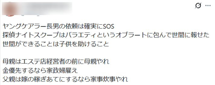 【探偵ナイトスクープ】 ヤングケアラーの父親は主夫?SNSは炎上!